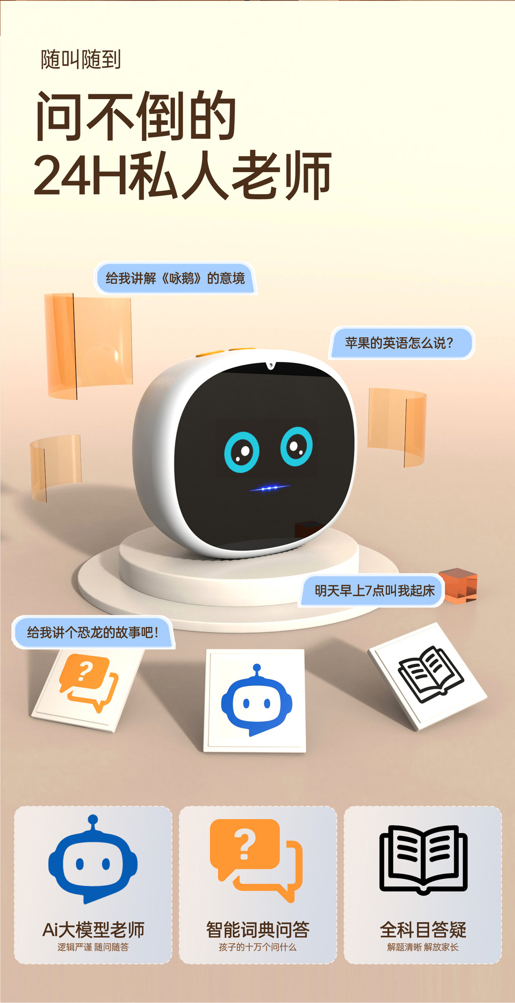 智能AI闹钟语音控制儿童新款益智早教学生专用学习机